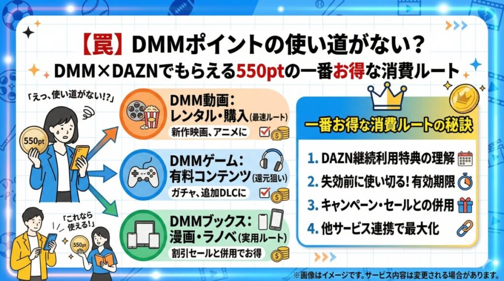 【罠】DMMポイントの使い道がない?DMM×DAZNでもらえる550ptの一番お得な消費ルート